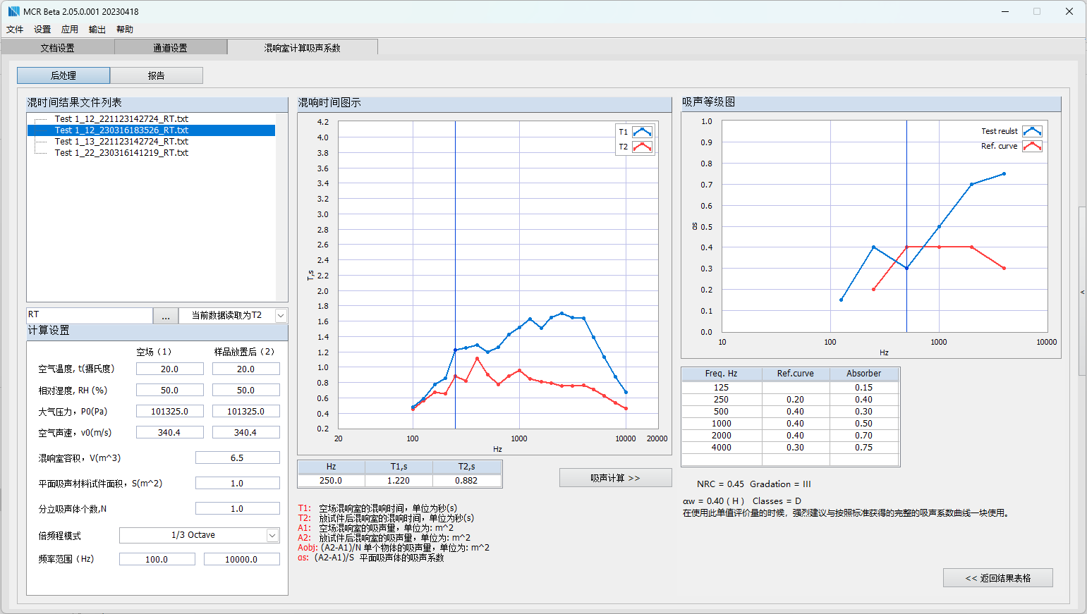 MCR-ABSR模塊為混響時間數(shù)據(jù)的后處理模塊,用于混響室法測量材料…